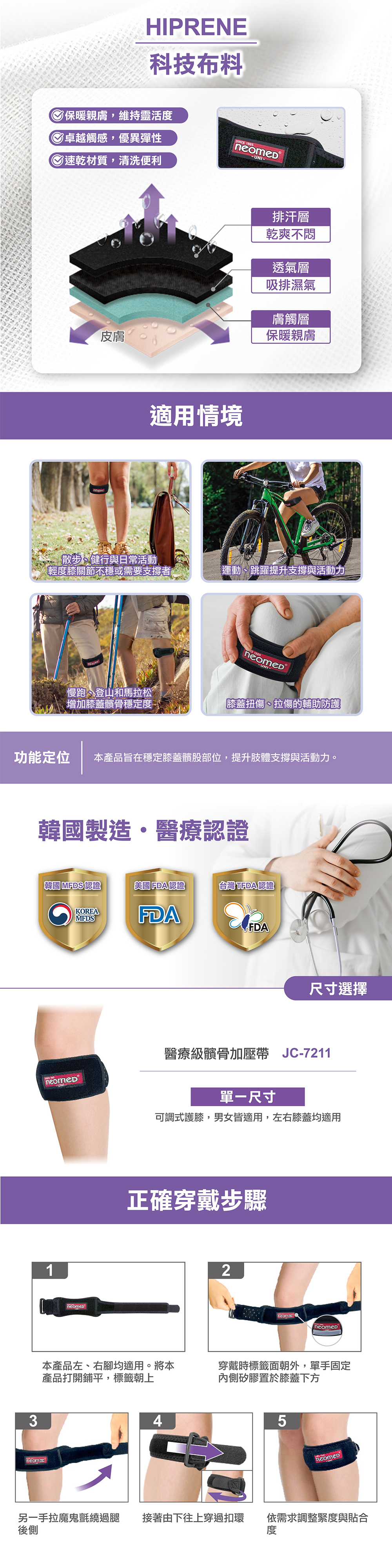 韓國耐護 醫療級髕骨加壓帶 JC-7211 FREE